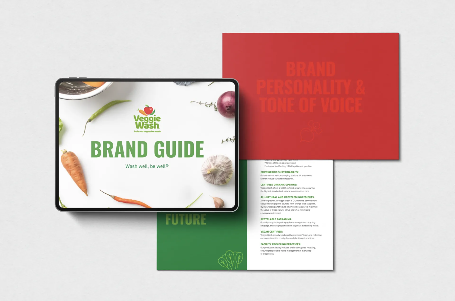 For Veggie Wash, our work centered on refining and formalizing the brand foundation. We developed a clear brand guide to establish consistency across packaging and marketing, then applied that system to email campaigns and in-store display materials, including stickers designed to stand out in retail environments and reinforce product benefits at the point of purchase.